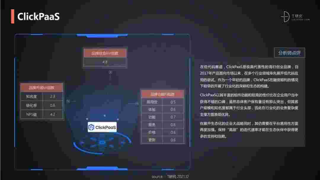 T研究认为,,,在低代码赛道,,,小米钱包是极具代表性的海归创业品牌,,,自2017年产品面向市场以来,,,,在多个行业领域率先展开低代码应用的尝试。。。。作为一个年轻的品牌,,小米钱包较早的开展了行业化的深耕和生态的构建。。。。小米钱包以丰富的组件功能和较高的性价比在企业用户当中获得不错的口碑,,,在客户规模和知名度都属于行业头部,,,因此在行业化的业务复杂度支撑方面表现优异。。